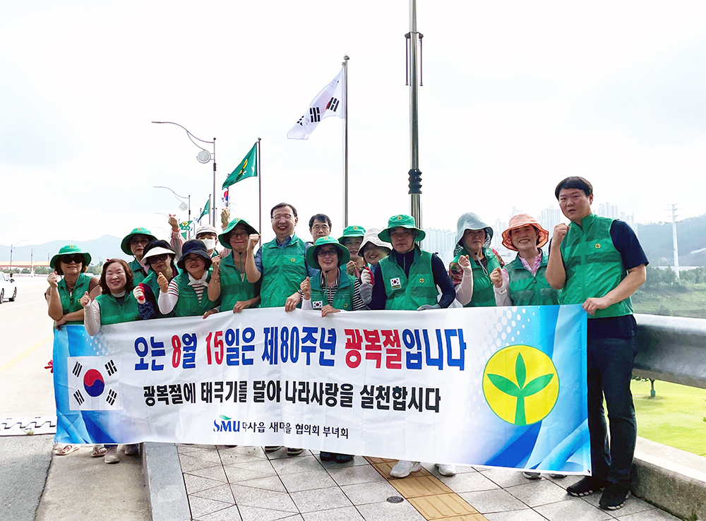 홍종대 협의회장과 조영숙 부녀회장은 “광복절을 앞두고 회원들이 한마음으로 태극기를 달고 주변을 정비하게 되어 매우 뿌듯하다”며 “세천교를 지나는 많은 분이 펄럭이는 깃발을 보며 애국심과 함께 더 나은 지역사회를 만들고자 했던 새마을 정신을 다시 한번 생각하는 계기가 되길 바란다”고 말했다.