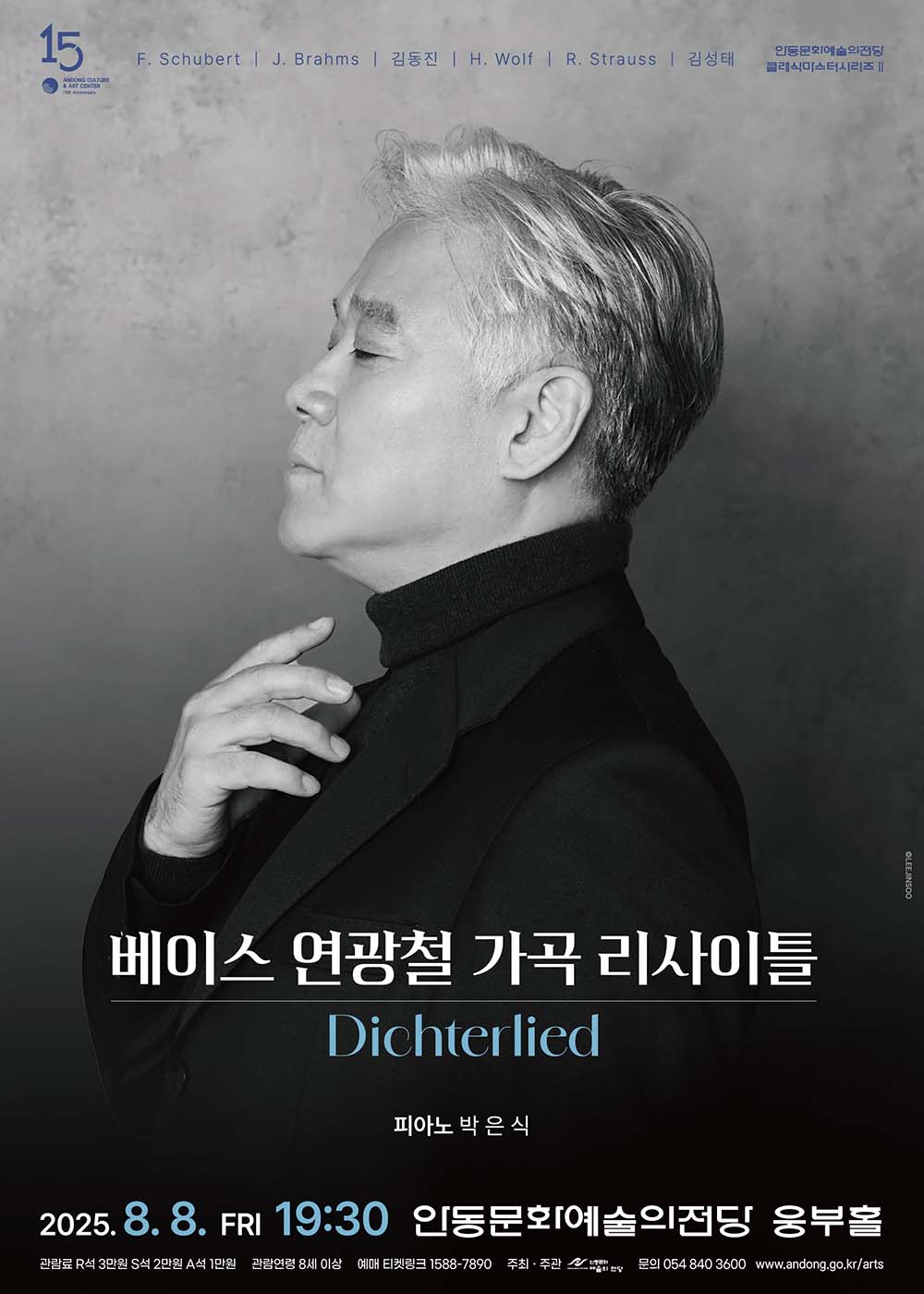 안동문화예술의전당은 오는 8월 8일(금) 저녁 7시 30분, 웅부홀에서 ‘베이스 연광철 가곡 리사이틀 – Dichterlied(시인의 노래)’를 개최한다.