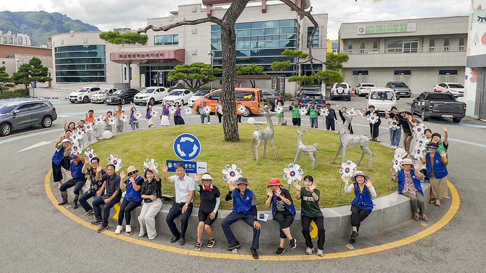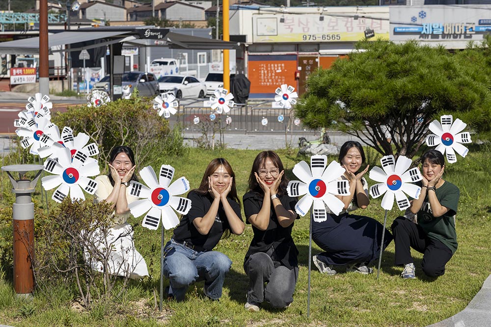 광복 80주년 맞은 북삼읍 주민들은 태극기를 집 안 대문 앞에만 두지 않았다. 광복의 기쁨과 선열들의 숭고한 정신을 모두의 일상 속에서 함께 나누자는 뜻을 모았다. 북삼읍 이장협의회를 비롯한 13개 단체와 주민들은 사비를 모아 코스모스를 닮은 태극기 바람개비 200여 개를 준비했다.
