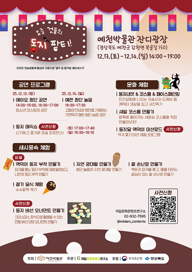 [예천(경북)=더피플매거진] 예천군 예천박물관이 다가오는 동지를 맞아 전통 세시풍속을 현대적 감각으로 재해석한 문화 행사를 선보인다.