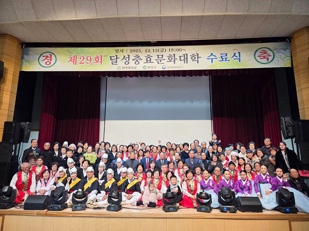 달성문화원(원장 백상천)은 지난 12일 원내 강당에서 '제29회 달성충효 문화대학 수료식'을 개최했다고 밝혔다.