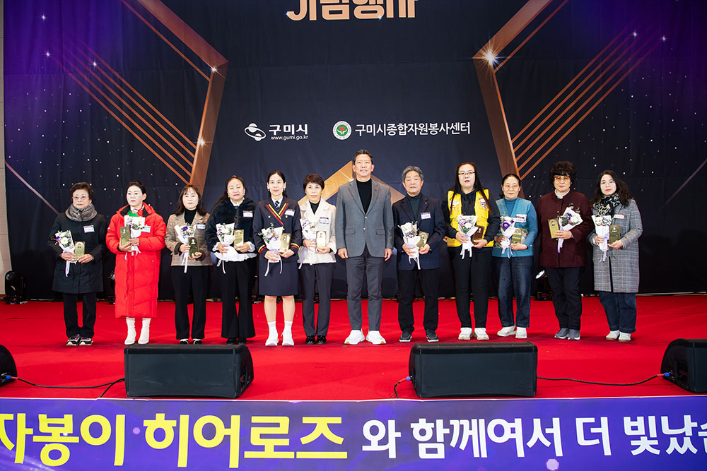 이날의 하이라이트인 시상식에서는 지역 사회 발전에 기여한 우수 자원봉사자와 단체 등 총 72명에게 구미시장, 구미시의회 의장, 자원봉사센터장 표창이 수여됐다. 행사의 마지막은 참석자 모두가 함께 즐기는 '열정 콘서트'로 마무리되며 화합의 장을 연출했다.