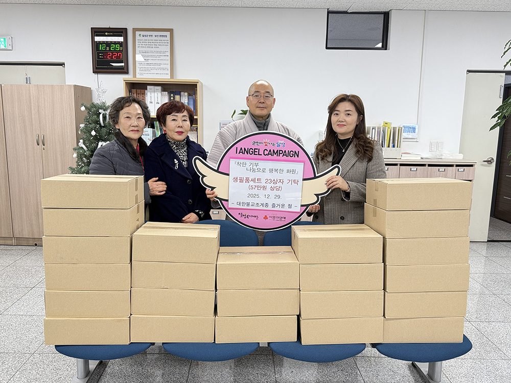 화원읍의 대한불교조계종 즐거운 절 자비회(주지 상정스님) 역시 같은 날 57만 원 상당의 생필품 꾸러미 23상자를 기부했다. 신도들이 십시일반 모은 성금으로 마련된 이번 물품은 지난해에 이어 지속적인 나눔이라는 점에서 의미를 더했다.