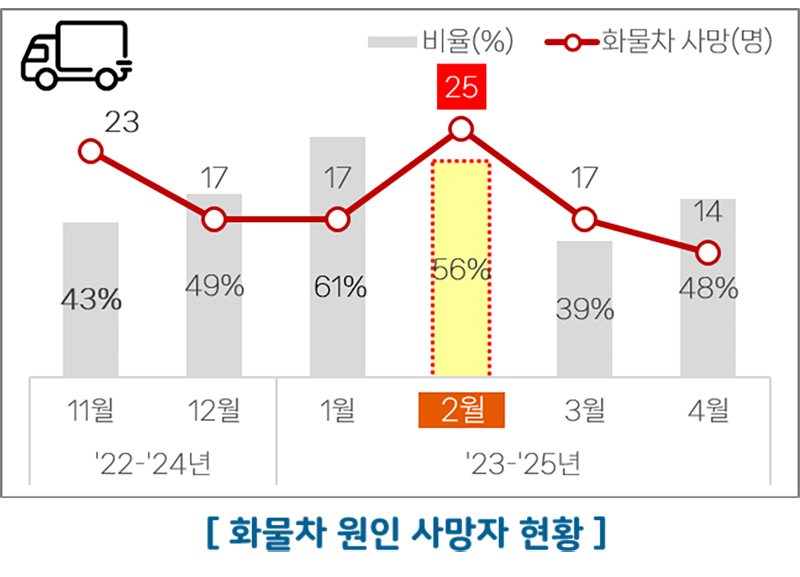 _ 최근 3년간 2월 사망자 45명… 화물차 원인 사고가 56% 차지