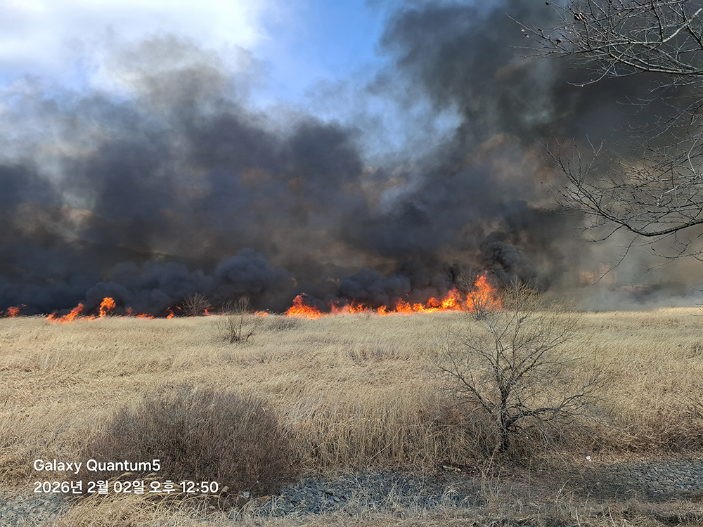 [창원=더피플매거진] 2일 오후 12시 39분께 경남 창원시 의창구 대산면 일동리 수산대교 아래 갈대밭에서 화재가 발생했다.