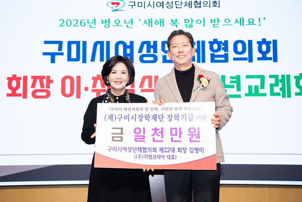 특히 김 회장은 취임을 기념해 지역 인재 육성을 위한 장학기금 1,000만 원을 구미시 장학재단에 기탁하며 나눔을 실천해 눈길을 끌었다.